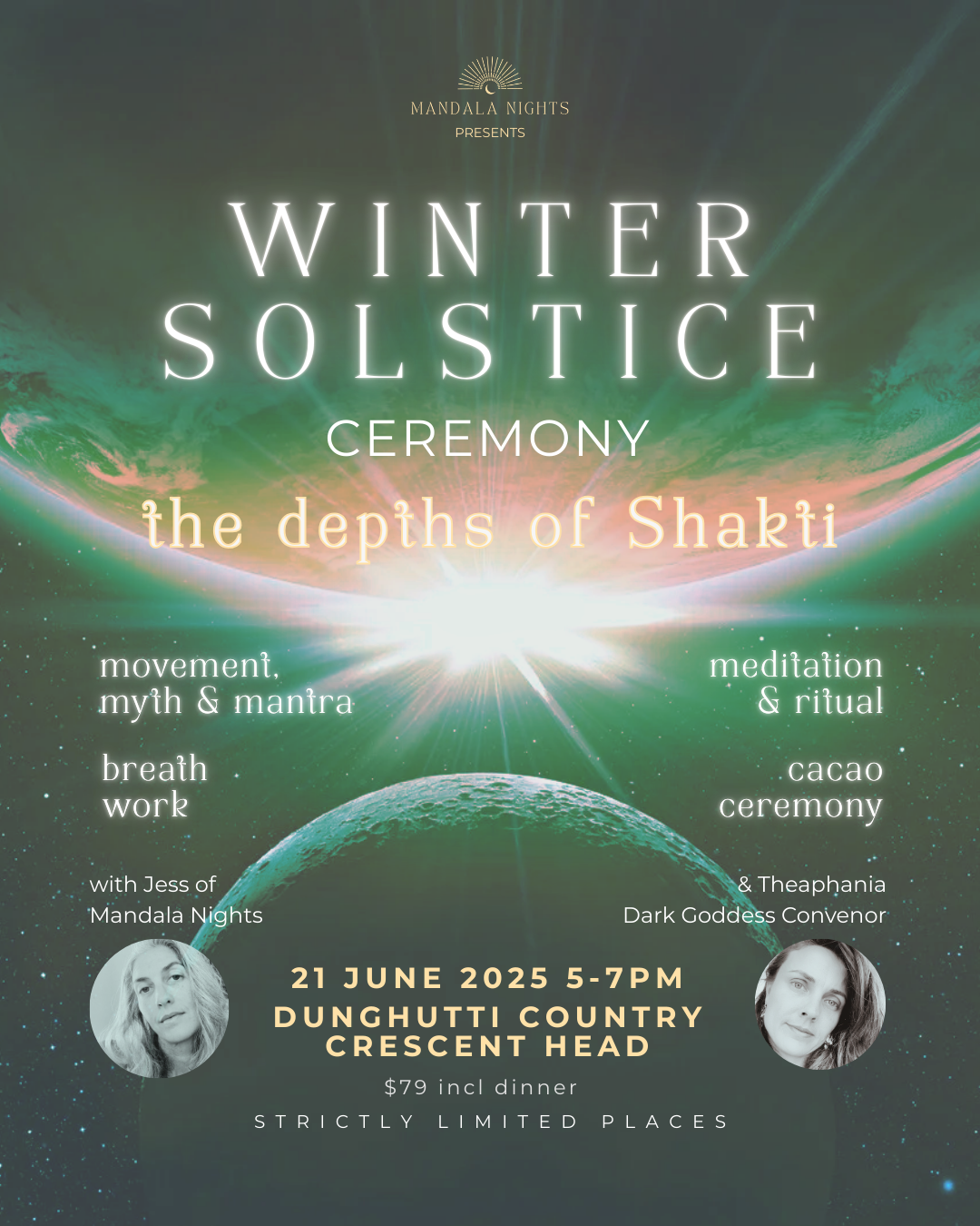Join us in the sacred shālā for this annual event. We’re spiralling our way up into Solstice light already my loves & we can’t wait…
